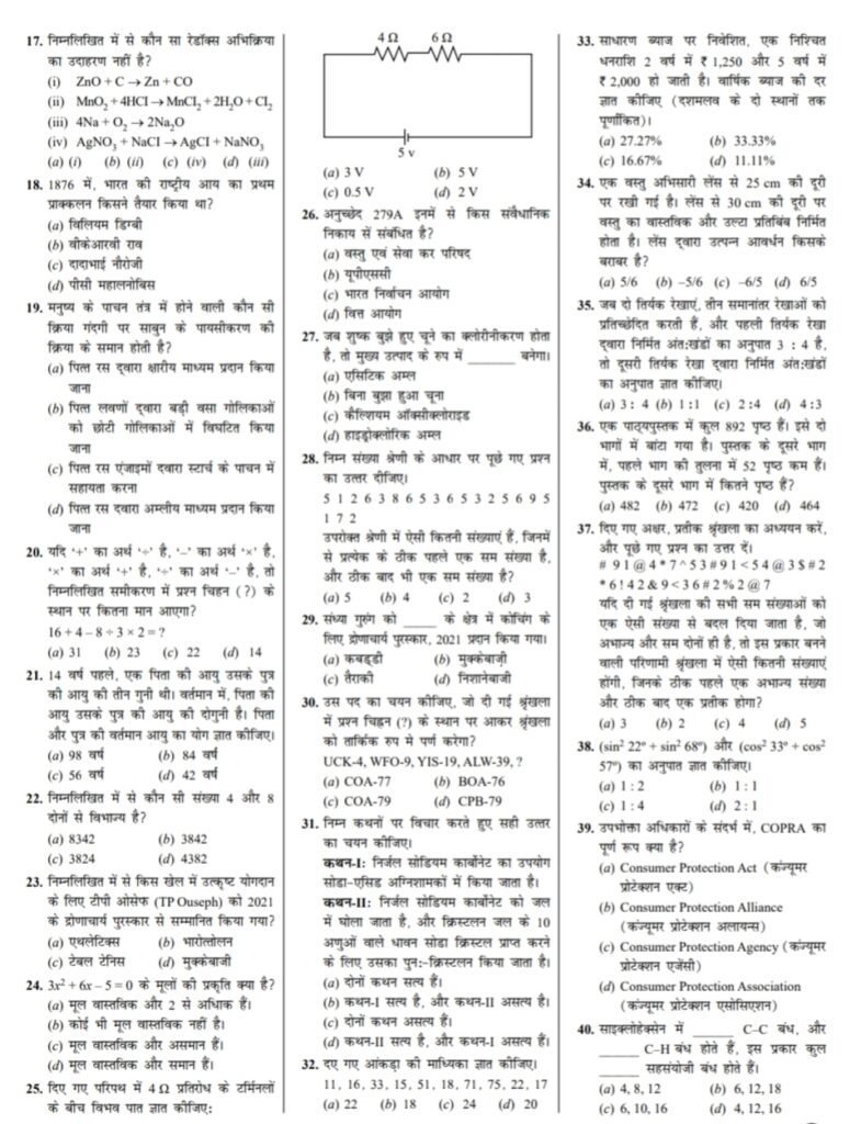 RRB Group D Exam Previous Years Question Paper : पिछले वर्ष का प्रश्न पत्र